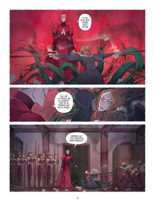 Ce troisième tome poursuit l’aventure fantastique imaginée par Amélie Sarn là où elle s’était arrêtée précédemment. En sus d’une bonne dose d’action au début, le scénario apporte les réponses attendues sur le passé de la famille de l’héroïne, leur tragique séparation et l’inimitié vindicative de Gallen envers la reine d’Udover. Il met également en perspective le moment réunissant Rose et cette mère qu’elle connaît à peine. Loin des effusions, l’événement porte la marque de la peur et de la colère liées au contexte général. Cela n'adoucit guère l’image renvoyée par la magicienne, tout en donnant aux jeunes lecteurs de quoi compatir avec les tourments de la principale protagoniste, ses questionnements et son besoin de reconnaissance. De son côté, Lise Garçon continue sur sa lancée graphique, son dessin agréable et typé accompagnant agréablement le propos.