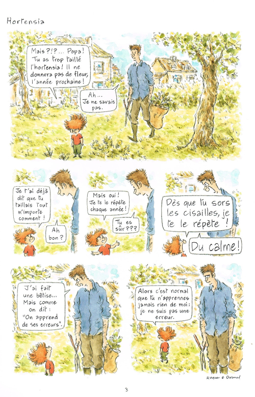 Comme à son habitude, Dominique Roques parvient à insuffler de la profondeur à des situations en apparence banales. Tout est prétexte à réfléchir, apprendre… et rire. Il faut dire que la plupart des histoires composant l’album sont développées sur 2 ou 3 pages, ce qui est à mon avis le meilleur format pour construire une scène qui ne soit pas qu’un « gag », tout en maintenant du rythme.