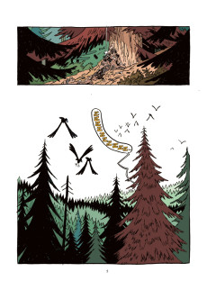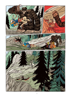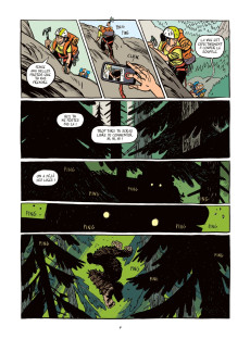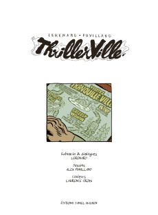 Récit choral à la limite des genres, Thrillerville est le premier scénario de Lerenard. Quelque part entre les frères Cohen et Guillaume Griffon, il anime une distribution haute en couleurs dans une sorte de course à l’échalote multicéphale particulièrement truculente. Des flics de campagne bourrus aux jeunes femmes dynamiques, en passant par l’épicière hors d’âge, sans oublier une ou deux créatures légendaires et, évidemment, quelques secrets passés et présents qui ressurgissent, les stéréotypes ne manquent pas. Heureusement, le néo-scénariste ne s’est pas limité aux apparences et au pastiche. Intercalés dans la trame principale, des retours en arrière très bien construits apportent précision et contexte aux différentes force en présence. Ces petites touches enrichissent la psychologie des personnages et amènent de nouvelles pistes ou significations aux événements. L’ensemble est emballé par un humour omniprésent et essaimé de références et clins d’œil «pop-culturesques» savoureux. Il en résulte un album tonique, un peu longuet peut-être, mais toujours fluide et bourré d’une énergie contagieuse.