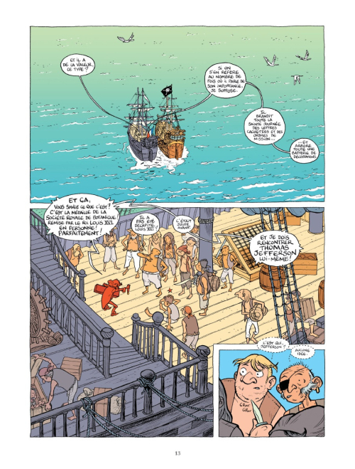 S'il ne faut, dès lors, pas bouder son plaisir, l'ouvrage ne parvient toutefois pas à se hisser au niveau de la précédente collaboration du trio. Assise sur des faits documentés, l'intrigue demeure en effet relativement linéaire et sans grande surprise. Surtout, elle invite à moins de réflexions que ce à quoi le scénariste a pu habituer les bédéphiles, les quelques accents mis sur le système démocratique de la micro-société pirate ou sur ce qu'apporte le progrès scientifique étant, somme toute, assez légers. Les personnages sont, par ailleurs, bien pensés mais aucun n'est véritablement attachant, le lecteur se sentant donc moins concerné par leur destin.