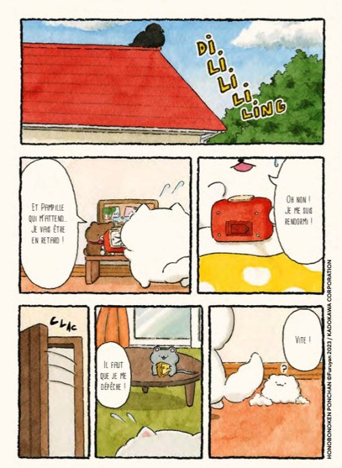 L'autrice fait partie de ses nouveaux artistes, qui se sont fait un nom sur les réseaux sociaux. C'est à partir de 2020 que Furuyan commence à publier sur X des strips présentant les aventures de Ponchan, dont le succès grandissant lui valent d'être remarquée par les éditions Kadokawa en 2023. Depuis, les histoires de Pompon, basées sur l'émerveillement inspiré par des petits riens du quotidien, ont été regroupées en deux tomes dont voici le premier proposé par Rue de Sèvres. Aussi simple qu'efficace, le thème est propice à la création de nombreuses petites aventures souvent tendres, parfois drôles. La gourmandise du joyeux personnage principal devient le ressort scénaristique de bon nombre de saynètes amusantes. Sa capacité à se laisser porter par son imagination en tombant sur un balai dans la rue par exemple, ou en jouant avec du papier d'aluminium est une autre source créative. Le ton doux et frais du titre plaira aux enfants mais aussi à leurs parents.