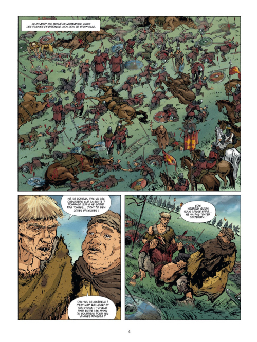 Assurément fin connaisseur (il signe le dossier final, intéressant et documenté), Jean-Yves Delitte tient fermement la barre et livre un scénario circonstancié et éclairant qu’il étoffe avec des éléments plausibles. Ainsi, si les acteurs principaux – Henry Ier, son fils William Adelin, Louis VI le Gros, le brave Thomas fils d’Étienne, originaire de Barfleur et d’autres – ont existé. L’auteur glisse parmi eux une paire de détrousseurs apportant du liant et jouant les témoins privilégiés des champs de bataille aux côtes où ont échoué les cadavres gonflés d’eau. L’écueil de la leçon ennuyeuse est évité ; de même, les psychologies apparaissent clairement, quoique traitées en surface et un brin caricaturales pour certaines figures. Finalement, autant que les aléas météorologiques et les rochers affleurant au large du Cotentin, les mauvais choix effectués ont conduit à une issue fatale.