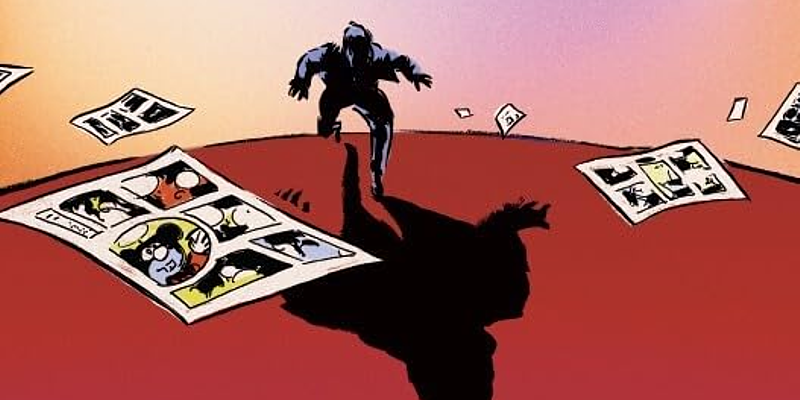 In Pictopia, fable dessinée par Donald Simpson, Mike Kazaleh, Pete Poplaski et Eric Vincent sur un scénario original d’un des grands noms des comics fut publiée en 1986 dans un recueil collectif caritatif au bénéfice de Gary Groth et du Comics Journal, alors empêtrés dans une affaire de diffamation. Il s’agit d’un petit récit satirique et passablement désespéré à propos de l’industrie du comics. Percutantes et impitoyables, ces quatorze pages avaient été remarquées par toute la profession. Groth finit par gagner son procès, put payer ses avocats et Fantagraphics continua sa mission d’éditeur exigeant. Fin de la première partie de l’histoire.