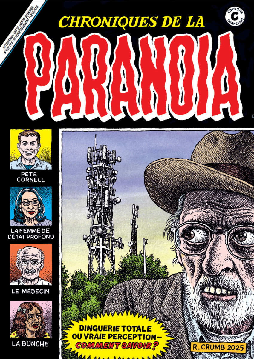 À quatre-vingt ans bien tassés et une carrière à l’aura sans pareille, Robert Crumb n’a plus rien à prouver. Simplement, lui qui a été une des pierres angulaires de la contre-culture BD des années soixante et suivantes, ne peut pas s’empêcher de scruter la société. Les dernières années ont été difficiles et celles qui s’annoncent font déjà frémir à l’avance. Covid 19, désinformations, faits alternatifs, théories du complot… il y a de quoi devenir fou, paranoïaque plus particulièrement. Attention cependant, comme l’a écrit Dominique Noguez : «Quand on veut trouver du sens, on en trouve. C'est même le commencement de la paranoïa.»