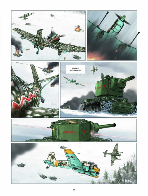 Après Dent d’ours, Black squaw et Buck Danny, Yann écrit… un autre récit d’aviation. Pour apprécier cet album, il vaut mieux s’intéresser aux descriptions techniques et aux longues séquences aériennes présentant des Panzerschreck, Junkers JU-88, Sturmovik et autres LA-5. Il va de soi que le scénariste adore son sujet et qu’il est très bien documenté.