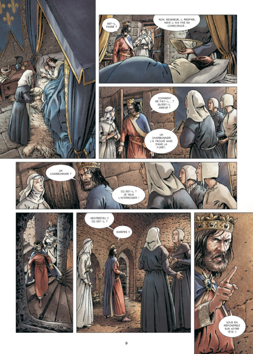 Paru en novembre 2025, ce quatrième tome de la Couronne de France met en scène le règne de Louis XIII (1601-1643) et les débuts de celui de son fils, Louis XIV (1638-1715) – lequel sera également au cœur de l’album suivant, à paraître en avril prochain. Jean-Pierre Pécau a choisi d’axer son propos sur le fonctionnement complexe du pouvoir et de ses rouages, afin de montrer comment les deux monarques ont assis leur autorité après des périodes de régence comportant quelques similitudes. Plus que les personnalités des deux hommes ou même celles de ceux qui les entourent, le récit s’intéresse aux alliances, complots, contestations, tensions, troubles et guerres.