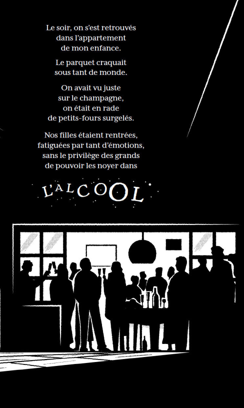 Noir et blanc de circonstance, illustrations pleines pages qui disputent l’espace à un texte narratif plein de ressenti, l’approche du dessinateur fait penser à celle de Zeina Abirached dans Le prophète. Les images répondent aux mots, soulignent ou contredisent le propos, tout en offrant des pistes de réflexions visuelles. Résultat, derrière l’effondrement du quotidien, la tristesse et la colère, un portrait apparaît. Il est grave évidemment, mais permet d’y voir plus clair et offre un petit peu d’espoir.
