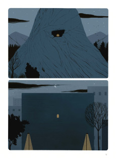 Superbement mis en image par l’intermédiaire d’un trait précis et vibrant à la fois, Nocturnos est doté d’une mise en page d’une efficacité redoutable. Naturelles et imperceptibles, les transitions d’un «état» à l’autre provoquent un léger état de confusion. Celles-ci renforcent l’atmosphère constamment entre deux eaux de l’ouvrage. Rêve et réalité s’enchâssent, se succèdent, tandis que, à peine apparus, les enjeux se résolvent comme par magie, d’un simple battement d’aile de hibou. Rien ne fait sens, sauf que tout est parfaitement logique. Le ressenti général qui en ressort est tout bonnement extraordinaire.