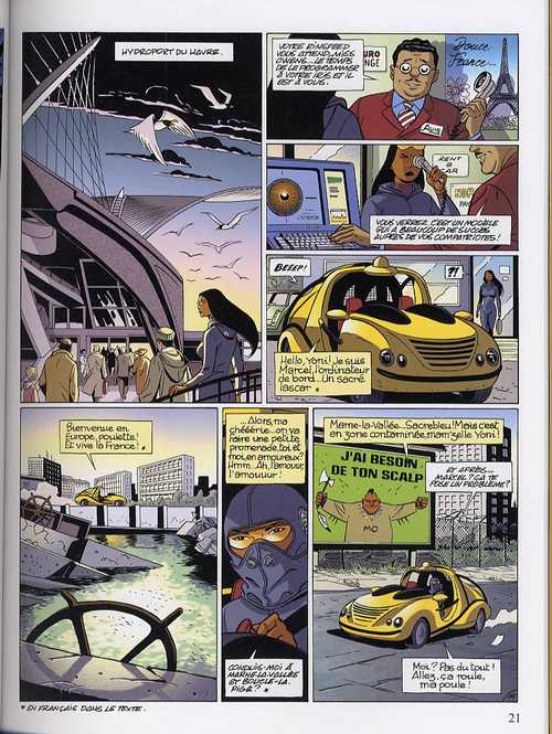 Malheureusement, le scénario de ce premier volume n'est pas exempt de défauts. Si l'intrigue principale regorge d'idées originales, elle pèche par manque de maîtrise au niveau de la narration: les rebondissements, parfois quelque peu convenus, se succèdent à un rythme fou et le lecteur aura du mal à suivre l'action. Dommage qu'un tel univers n'ait pas été mieux exploité et que Yann se contente d'enchaîner les courses-poursuites. Autre grief à retenir à l'encontre de cet album: la myriade de noms scientifiques qui désignent autant d'inventions futuristes et autres gadgets qui ne sont pas sans rappeler un certain agent double zéro. Voilà qui n'est pas pour faciliter la lecture.