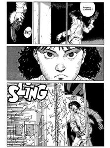 Le festival Otomo peut commencer. Le récit gagne lentement en intensité, le rythme s'accélère doucement mais sûrement, et à mesure que la folie s'installe, les pages dégagent une impression d'oppression de plus en plus palpable. Otomo s'amuse: son histoire est servie par des cadrages surprenants, efficaces et spectaculaires, (ses nombreux gros plans de visages effrayés notamment, qui contribuent fortement à l'ambiance du récit, ou ses scènes récurrentes en plongée , soulignant l'isolement, qu'il soit physique ou moral, des personnages...). Le découpage est nerveux, incisif, alternant scènes au rythme ultra-rapide et double-pages d'une seule case, comme autant d'aérations nécessaires pour reprendre son souffle.
