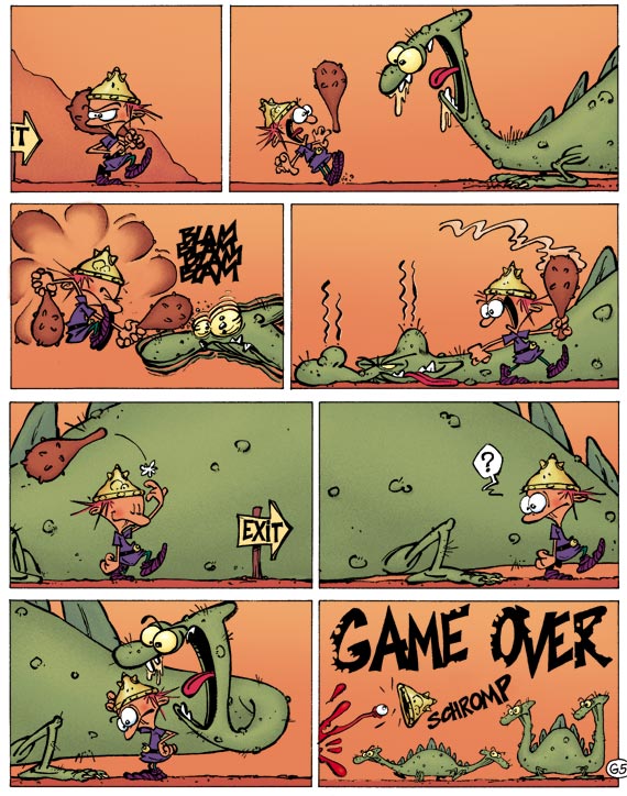 Série dérivée de Kid Paddle . Nous avons là un recueil de gags en une planche mettant en scène un personnage de jeux vidéo fonçant invariablement dans les pièges cruels disséminés sur son parcours.