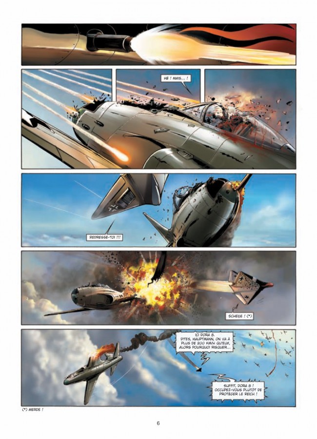 Cette série est totalement indigeste, non pas que l'uchronie nazie soit en cause (on peut s'amuser à casser les codes, cela ne me choque pas dans une œuvre de fiction), mais parce qu'il s'agit de 24 albums à peu près tous identiques sauf la forme des avions. 24 albums successifs d'escarmouches aériennes (souvent illisibles) où les nazis gagnent à peu près à tous les coups par l'intervention d'un Deus ex Machina en la personne de Murnau, un pilote qui ne meurt jamais et qui constitue paradoxalement la grosse faiblesse de la série. Là où l'on attend des considérations aéronautiques intéressantes sur les avantages et inconvénients de différentes technologies nouvelles, Nolane nous sert une histoire de quasi super-héros dans un emballage uchronique sans intérêt philosophique. Totalement indigeste.