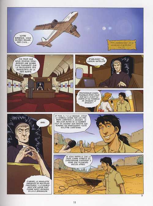 Le 1er tome du "Messager" surfe sur la vague des scénarii bibliques comme le Troisième Testament ou le Triangle Secret qui prétendent que le Christ avait un frère. L'action est contemporaine et la présentation des différents acteurs nous entraîne de New York à Jérusalem, en passant par Washington. Dès ce petit tour d'horizon, Richez réussi le tour de force de nous perdre. Mais qui sont les protagonistes principaux de cette histoire ? Le père Gabriel, prêtre pour le moins atypique, qui pratique la violence et l’intimidation ? Simon Cohen, l’archéologue fouineur qui met à jour le tombeau ou Sarah sa discrète femme ? A moins que cela ne soit Monseigneur Echébal, prélat à la tête de l’Opus Dei et secrétaire du Pape lui-même qui a une bien curieuse attitude pour un homme d’église. En fait, ce qui frappe au 1er abord, c’est que tous ces personnages sont atypiques. Aucun, sauf peut-être ceux qui disparaissent assez vites, ne correspondent à l’idée que l’on se fait d’eux normalement.