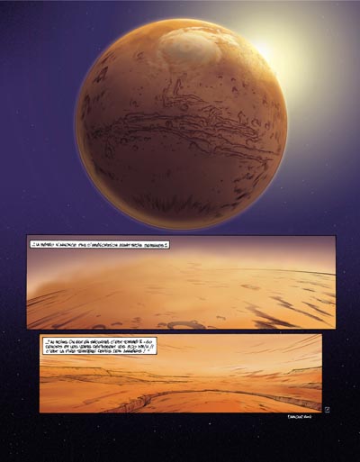 La vie sur Mars a pourtant des attraits scénaristiques suffisants pour justifier un aparté conséquent et de qualité. Mais seul l'aspect graphique de la planète est dérivé sous toutes ses coutures… rouges bien sûr. C'est réalisé avec le brio d'un trait vif et "moderne", et élégamment mis en couleurs par Fabrys, mais cela ne justifie pas autre chose qu'une lecture rapide et sans relief.