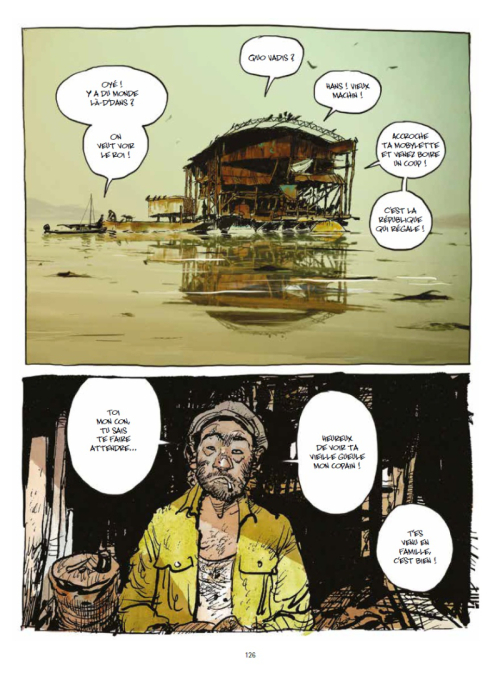 Et puis les personnages sont moins envoutants, le chien bleu peu présent. Bref, les ressorts de l'album précédent ne sont pas présents et je n'irai pas jusque dire que je me suis ennuyé lors de la lecture, mais il a manqué un supplément d'âme pour que je me sente transporté comme ça a été le cas pour le Tome1.