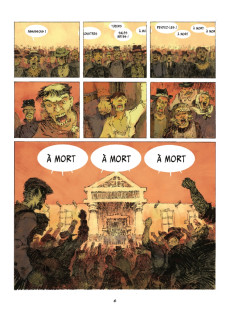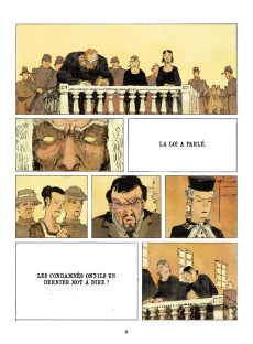 Jolan Thomas a choisi un western comme cadre de son premier album. Le genre est éprouvé, éternellement à la mode et souvent réinventé. Des bandits, une attaque de train qui dérape, le procès et la corde, pas vraiment de surprise. Pour donner un peu de chair à ce programme notablement balisé, le néo-auteur a tenté d’insuffler un peu de profondeur à ses personnages et en appelle à la clémence du jury. Des hors-la-loi, ça ne fait aucun doute, mais sont-ils si différents de tout un chacun ? Comment traitez-vous cette terre qui vous nourrit ? Et quel sort avez-vous réservé à ceux qui l’habitaient avant votre arrivée ? Ça change un peu la donne, n’est-ce pas ? Pas du tout, la loi est la loi, il faut la respecter. La fable est simple, peut-être un peu trop malheureusement. En effet, malgré une construction narrative efficace, le scénario du Procès des affamés laisse le lecteur un peu sur sa faim. S’il est impossible de ne pas adhérer au propos, c’est aussi parce que celui-ci s’avère passablement consensuel, voire pauvret dans son développement.