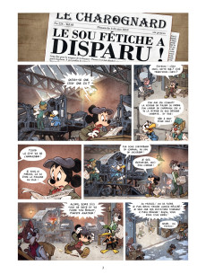 ondres, milieu du XIXe siècle. La nouvelle fait la une des journaux : le sou fétiche de Picsou a disparu ! Comment se porte le milliardaire ? L’économie du pays est-elle en danger ? Pigiste au Charognard, le tabloïd qui ose dire les faits, Mickey est chargé d’en savoir plus par son rédacteur en chef. La mission n’est pas aisée, car le richissime canard n’est pas le plus commode à interviewer. Peut-être que son neveu aura des infos exclusives ? Après un semblant de commencement d’enquête, Mickey se retrouve sur le port, toujours sur la piste d’indices. Est-ce la chance du reporter ou une coïncidence ? Il tombe sur Donald et Dingo, également en baguenaude, avant de faire la connaissance d’un capitaine d’un caboteur un peu spécial. De fil en aiguille, le trio se retrouve en mer, sur la piste de pirates. Et le sou fétiche ? Ben, s’il y a des pirates, il y a forcément un trésor caché…