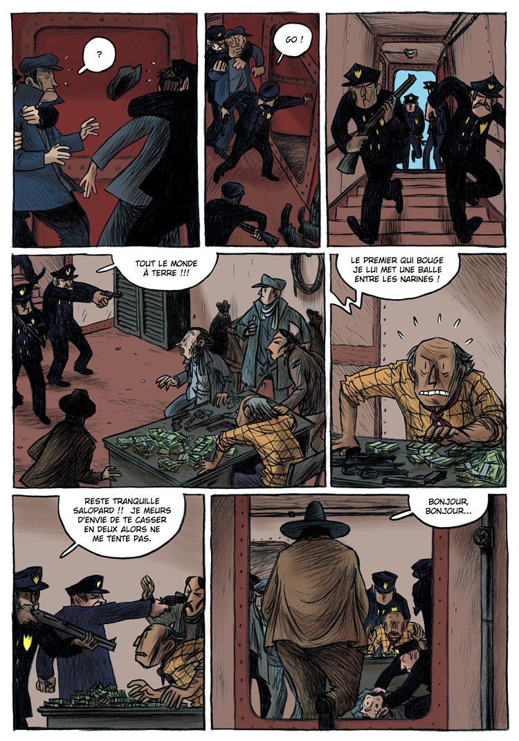 Jérôme Jouvray : Pour le dessin, j'ai regardé quelques BD et quelques films, pour piquer des idées de décors... on a trouvé pas mal de photos de New York sur le net aussi... La référence qui vient le plus souvent c'est Sergio Léone...
