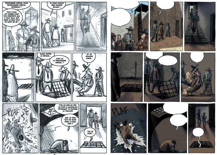 Olivier Jouvray : Nous voulions un chouette bouquin avec beaucoup de choses rajoutées et pas seulement la version noir et blanc ou crayonnée du livre. On a rajouté 16 pages d'infos, d'explications sur notre travail et nous avons pris le temps de commenter ensuite chaque page de l'album. Il a été conçu comme un DVD avec ses bonus en fait.