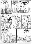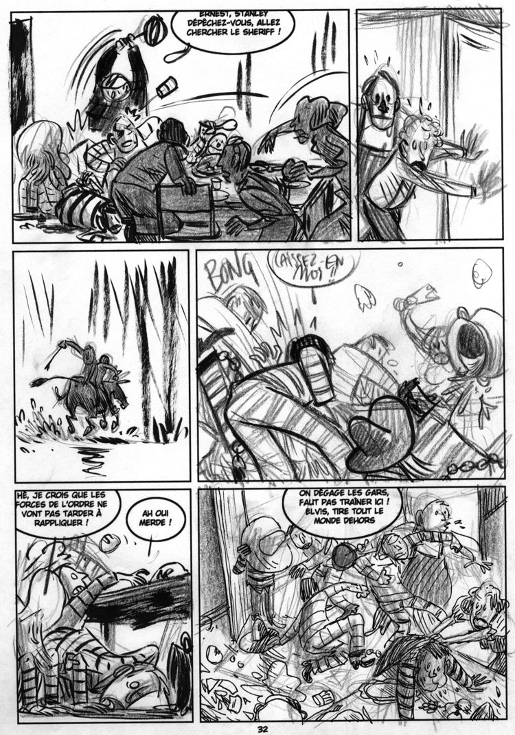 Jérôme Jouvray : C'est vrai que c'est le boulot d'Olivier de trouver les trucs drôles... Après c'est à moi de bien les dessiner, souvent il me fait retravailler une case ou une mise en scène pour aller un peu plus vers ce qu'il imaginait... Il me pousse souvent à aller vers quelque-chose de plus caricaturo-comique, ce que je n'ose pas forcément du premier coup...