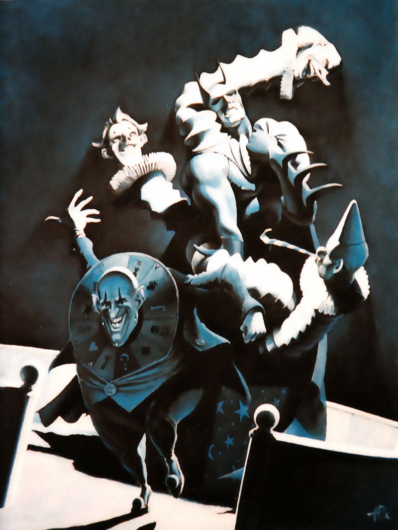Trouver des visuels pour illustrer ce "Coup de projo" n’a pas été une mince affaire, peux-tu nous expliquer pourquoi ? A.B : En fait, il n y a jamais eu de temps consacré à la recherche de design ou autre. Chaque concept ou perso a été réalisé "brut de décoffrage", à chaque page. Si je travaillais en dehors de la page, le dessin était automatiquement intégré plus tard dans l'album. Et puis travailler en numérique réduit ou supprime beaucoup de rough ou de croquis, vu que j'élimine les crayonnés au fur à mesure que le dessin final avance. Même la première couverture du tome 1 qui a été refusée a servi de 4ème de couv pour le tome 2. Tout a été rentabilisé ! En revanche, Marco, l'homme-cochon du tome1 est un perso qui traînait depuis longtemps au fond de mon disque dur. Ce personnage n'est là que pour vous dire que c'est un univers bien farfelu... En revanche, nos lecteurs peuvent découvrir une "planche mystère"... Quid ?