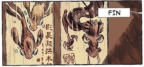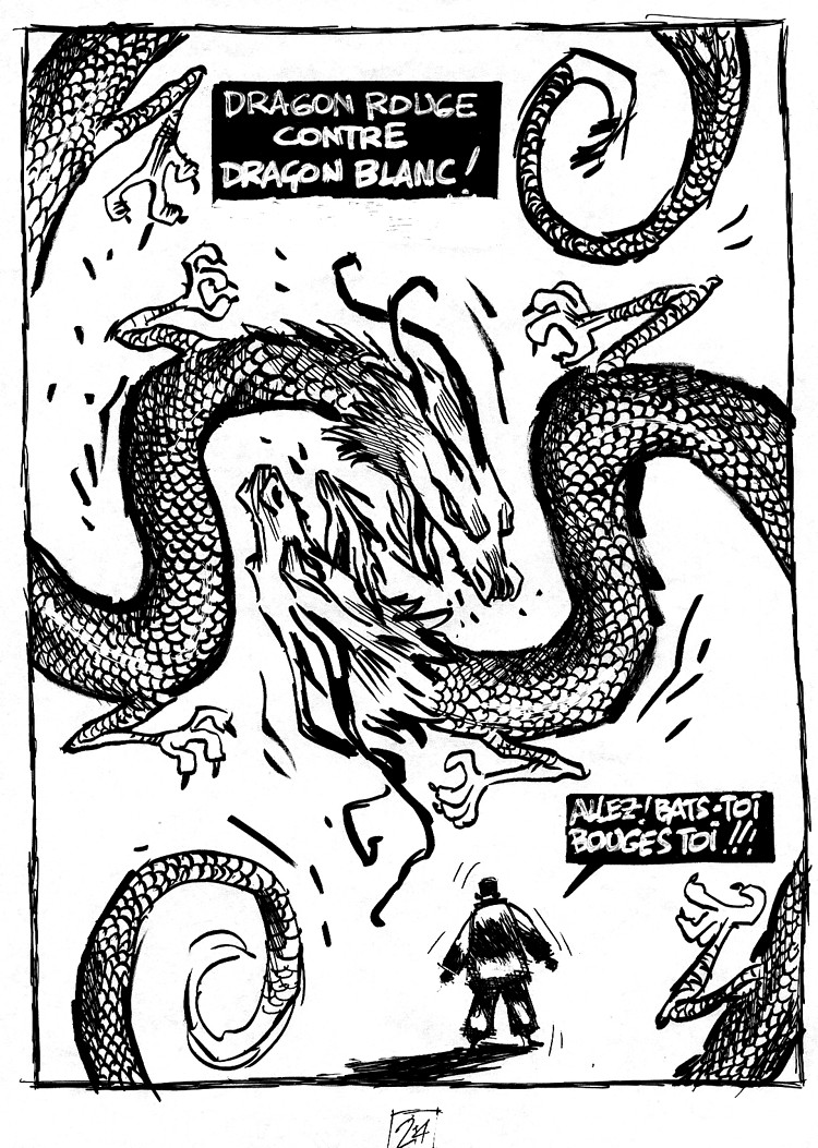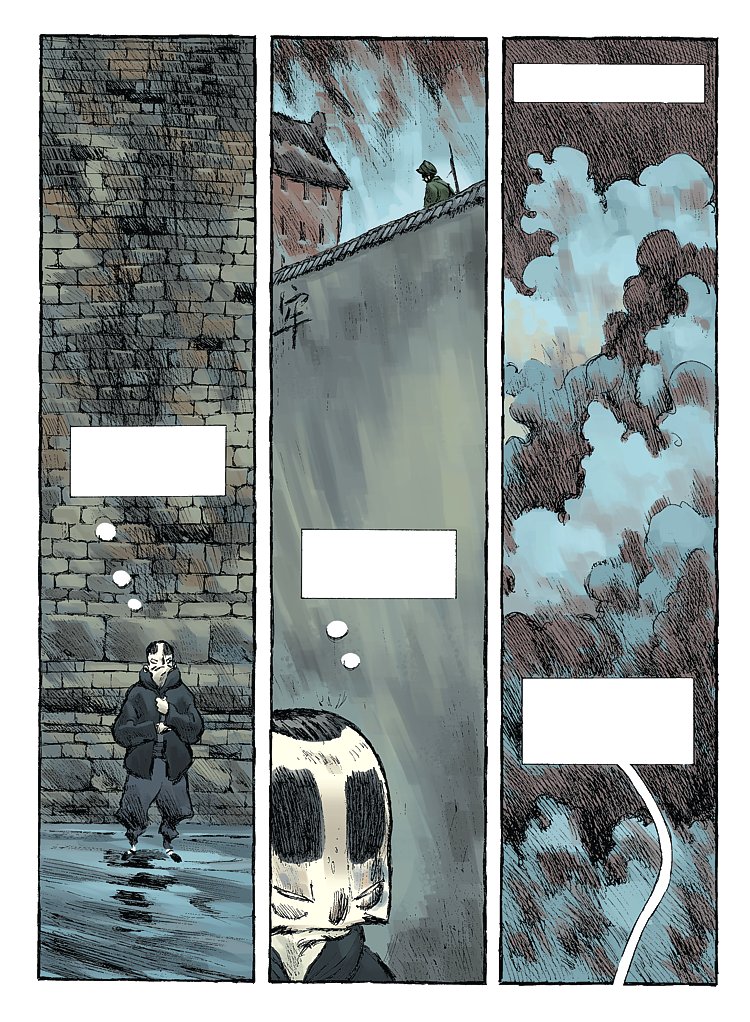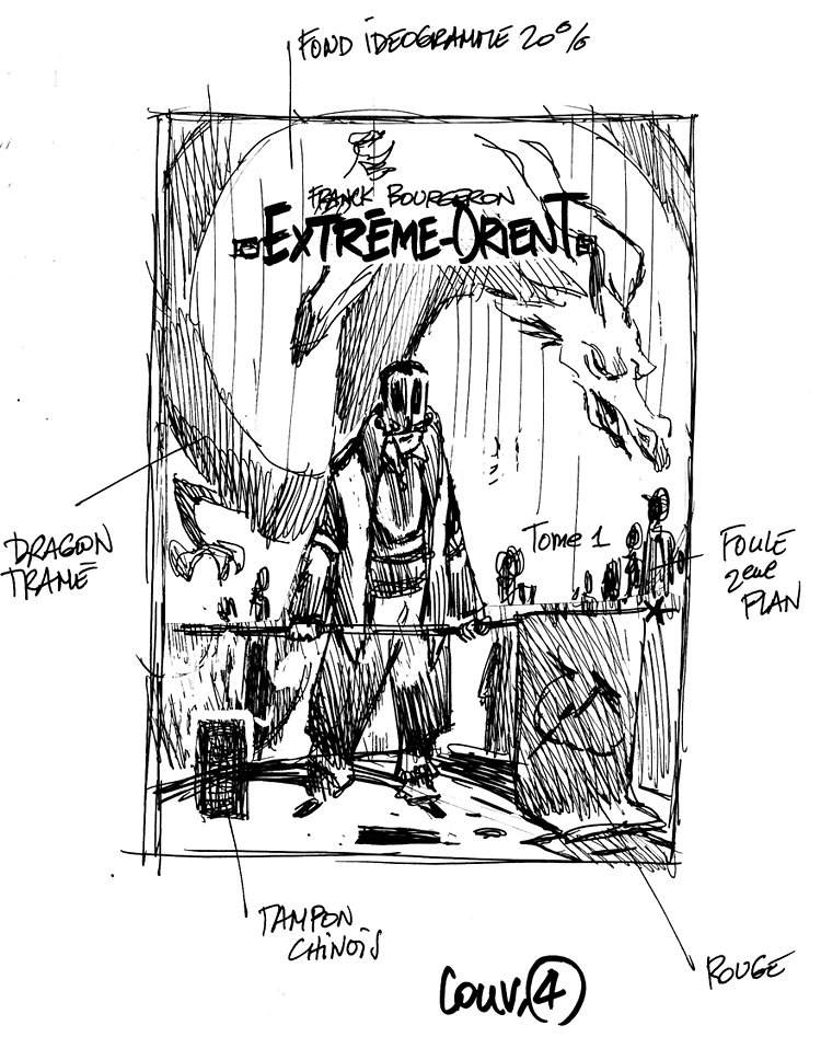 FB : Si bien sûr, il y a de tout. Mais je ne voulais pas directement m'inspirer de l'art chinois comme on peut le voir, des estampes, ces grandes toiles qu'on voit faites au pinceau... Mais c'est vrai que quand tu baignes là-dedans, que tu commences à traiter ce type de paysages, évidemment tu arrives à ça. Quand tu commences à découper ton story-board, ce genre de dessin vient sous le stylo.