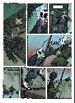 FB : Par le fait de changer de rythme. Ca permet à un moment précis, de donner du temps ou de l'espace. Je joue pas mal avec ça, c'est un système de découpage qui était pratique pour moi. Après je l'ai fait récurrent parce que quand on commence à mettre en place un truc, on essaie de s'y tenir pour donner une cohérence générale au système. Et puis aussi par goût, je ne sais pas pourquoi mais mes compositions fonctionnent mieux en vertical qu'en horizontal. J'ai plaisir à dessiner ces cases là.