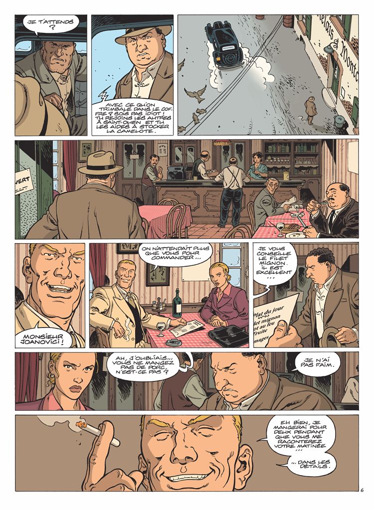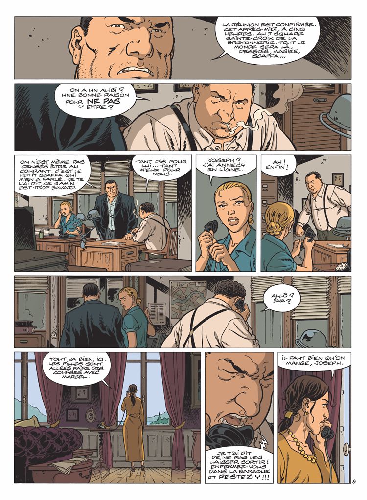 Au jeu de la paranoïa et des décisions à prendre sur le vif, Fabien Nury ne laisse aucune occasion de tergiverser. Une première scène menée tambour battant dans un couvent, puis une deuxième, prenant aux tripes, tourne au massacre… Tout s’enchaîne très vite, ne laissant au lecteur qu’un minimum de répit. Le répit, c’est ce qu’il manque à Joanovici, acculé comme une bête traquée. Plus encore que dans le tome précédent, il semble plus subir les événements que les maîtriser. Pire, il perd son sang-froid quand l’annonce de la libération imminente de la Capitale lui vient aux oreilles. Bousculé par ses plus fidèles lieutenants, impressionné par la froideur implacable de Lucie, ébranlé par la découverte d’Eva, son épouse, sur ses antécédents, Joseph vacille mais improvise toujours esquives et contre-attaques aussi justes qu'immédiates. Un talent lié à l'instinct de survie, dont le lecteur est désormais familier, mais qui laisse toujours pantois.
