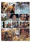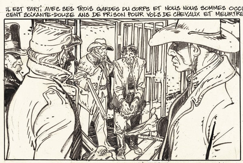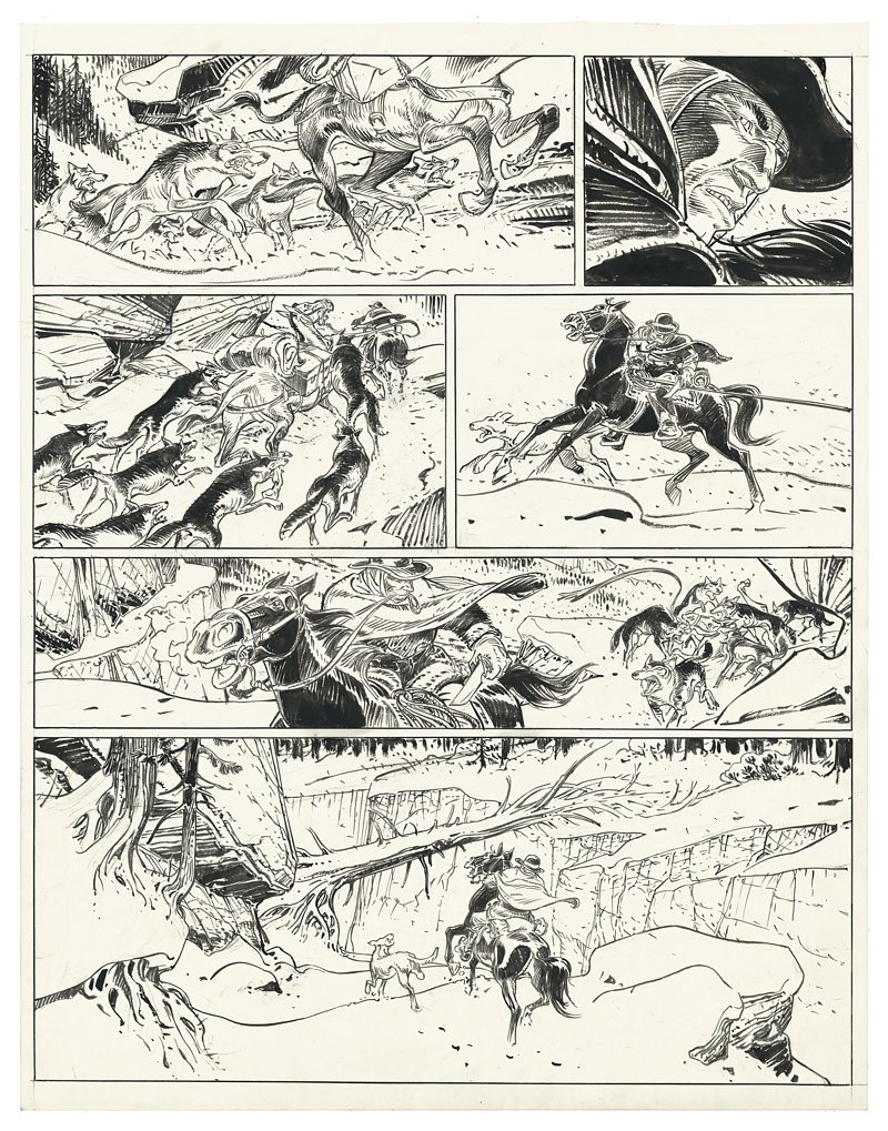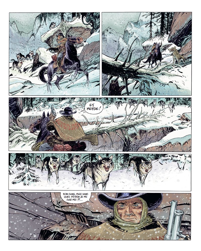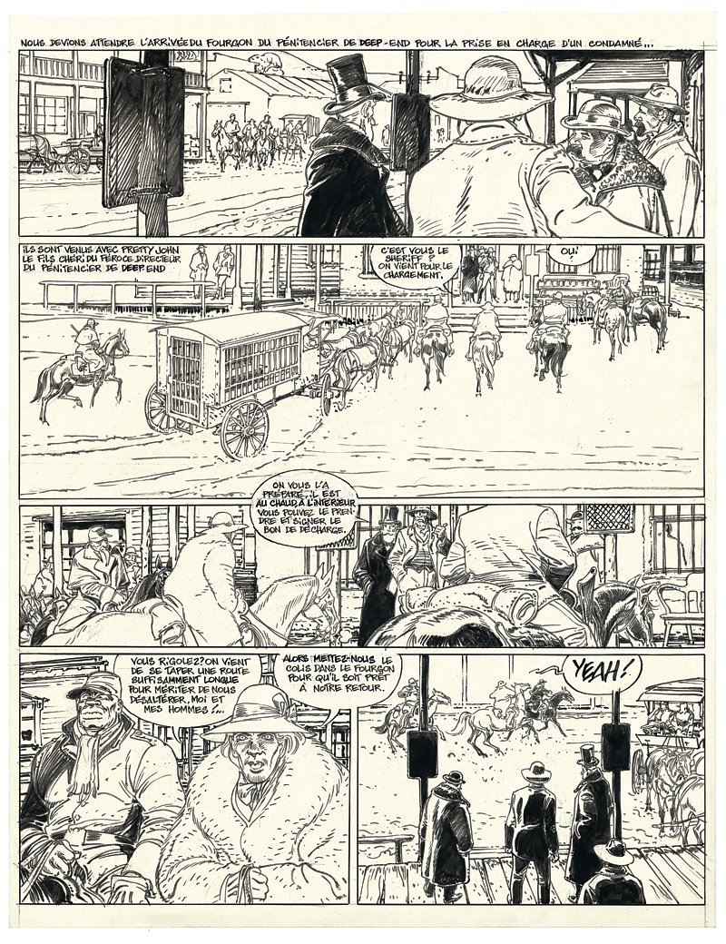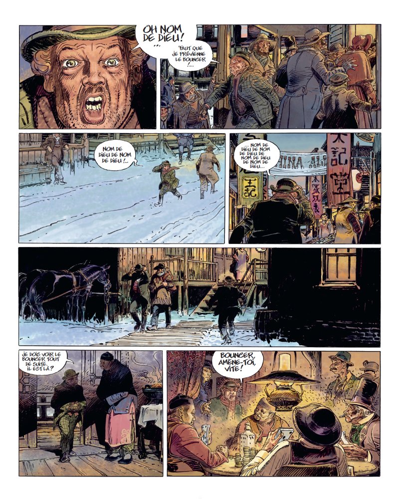 C’est un pari que j’ai fait. Je voulais faire en sorte que l’image soit suffisamment expressive pour qu’elle puisse suggérer le bruit. Quand on écrit « Bang », « Crack » ou « Pan » dans une bande dessinée réaliste, je trouve ça ridicule, alors que ça passe très bien pour une bande dessinée humoristique. Ce sont des conventions mièvres, beaucoup trop naïves, qui étaient valables dans des bandes dessinées anciennes. La bande dessinée a pris tellement d’avance qu’il faut la traiter avec un maximum de respect. J’ai toujours l’impression de ne pas entendre la chose, d’avoir la suggestion d’un bruit minimisé, voire ridiculisé par rapport à ce qui devrait être. Je préfère ainsi ne pas utiliser ces onomatopées et jouer sur la suggestion des personnages, celui qui reçoit une balle ou celui qui tire, sur l’intensité de l’expression, pour donner l’illusion du bruit.