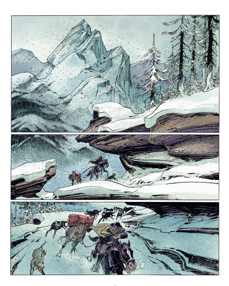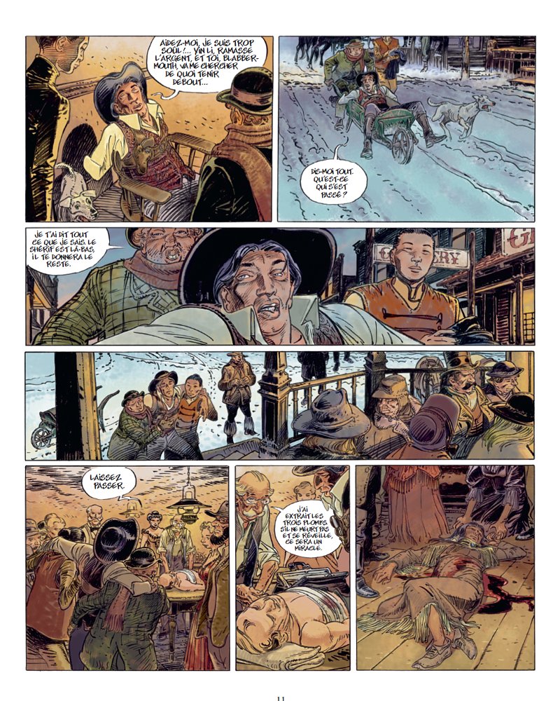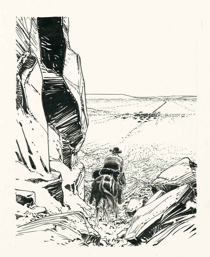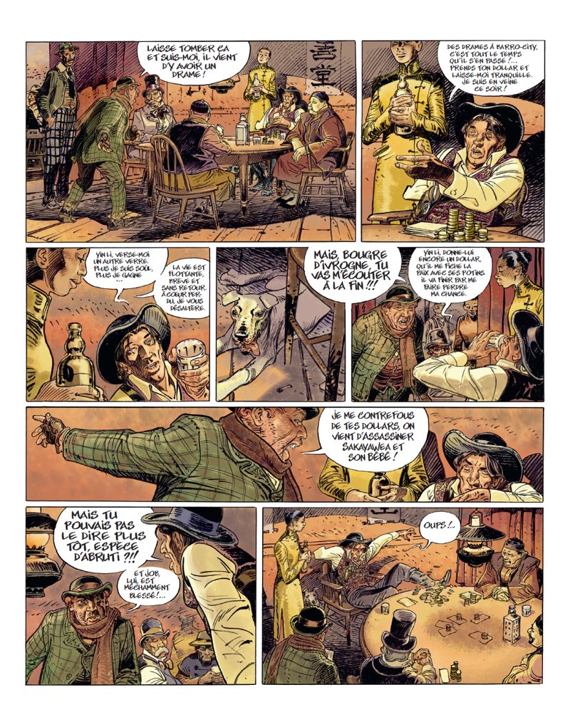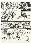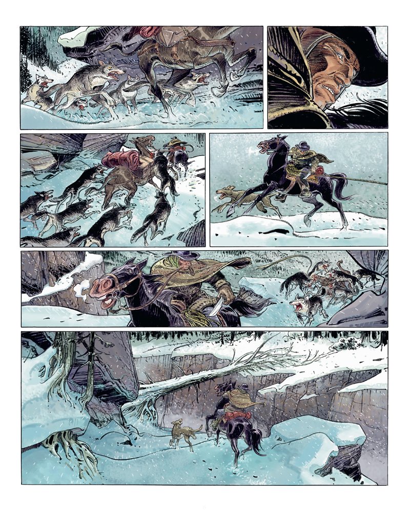 C’est un pari que j’ai fait. Je voulais faire en sorte que l’image soit suffisamment expressive pour qu’elle puisse suggérer le bruit. Quand on écrit « Bang », « Crack » ou « Pan » dans une bande dessinée réaliste, je trouve ça ridicule, alors que ça passe très bien pour une bande dessinée humoristique. Ce sont des conventions mièvres, beaucoup trop naïves, qui étaient valables dans des bandes dessinées anciennes. La bande dessinée a pris tellement d’avance qu’il faut la traiter avec un maximum de respect. J’ai toujours l’impression de ne pas entendre la chose, d’avoir la suggestion d’un bruit minimisé, voire ridiculisé par rapport à ce qui devrait être. Je préfère ainsi ne pas utiliser ces onomatopées et jouer sur la suggestion des personnages, celui qui reçoit une balle ou celui qui tire, sur l’intensité de l’expression, pour donner l’illusion du bruit.