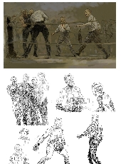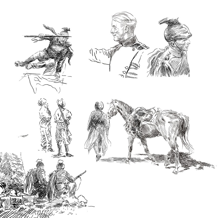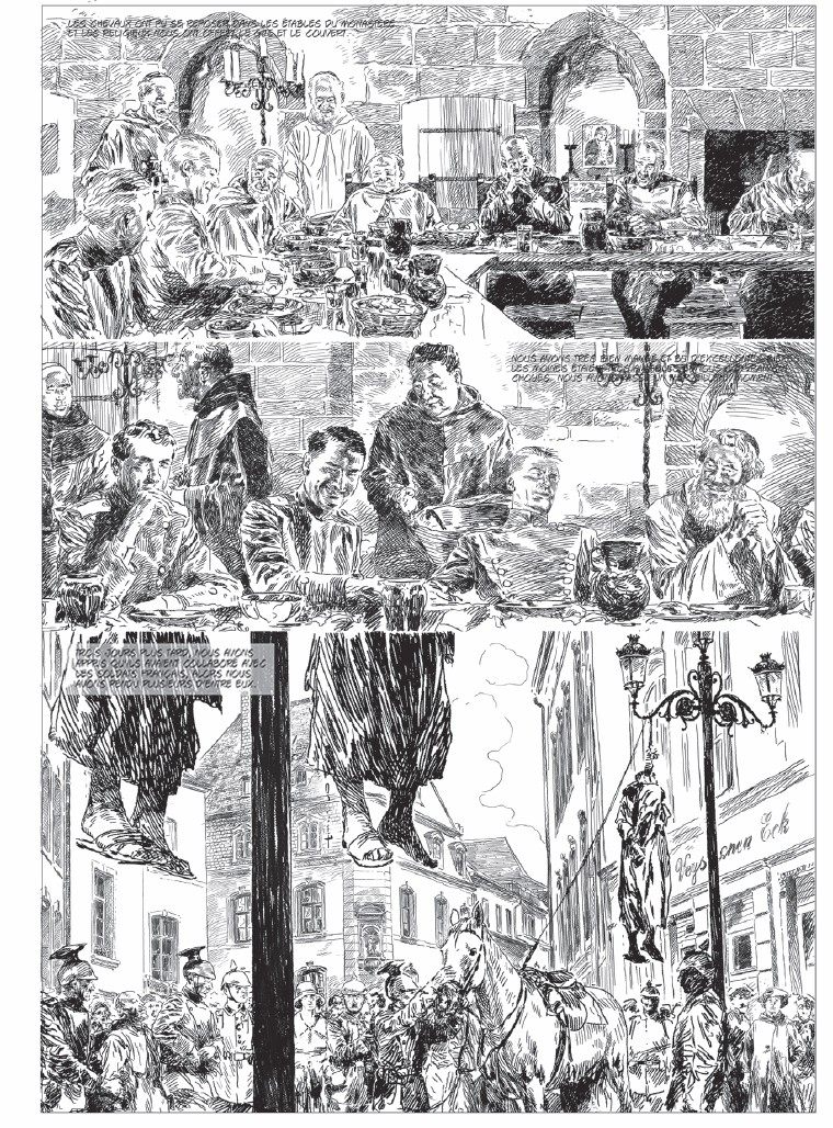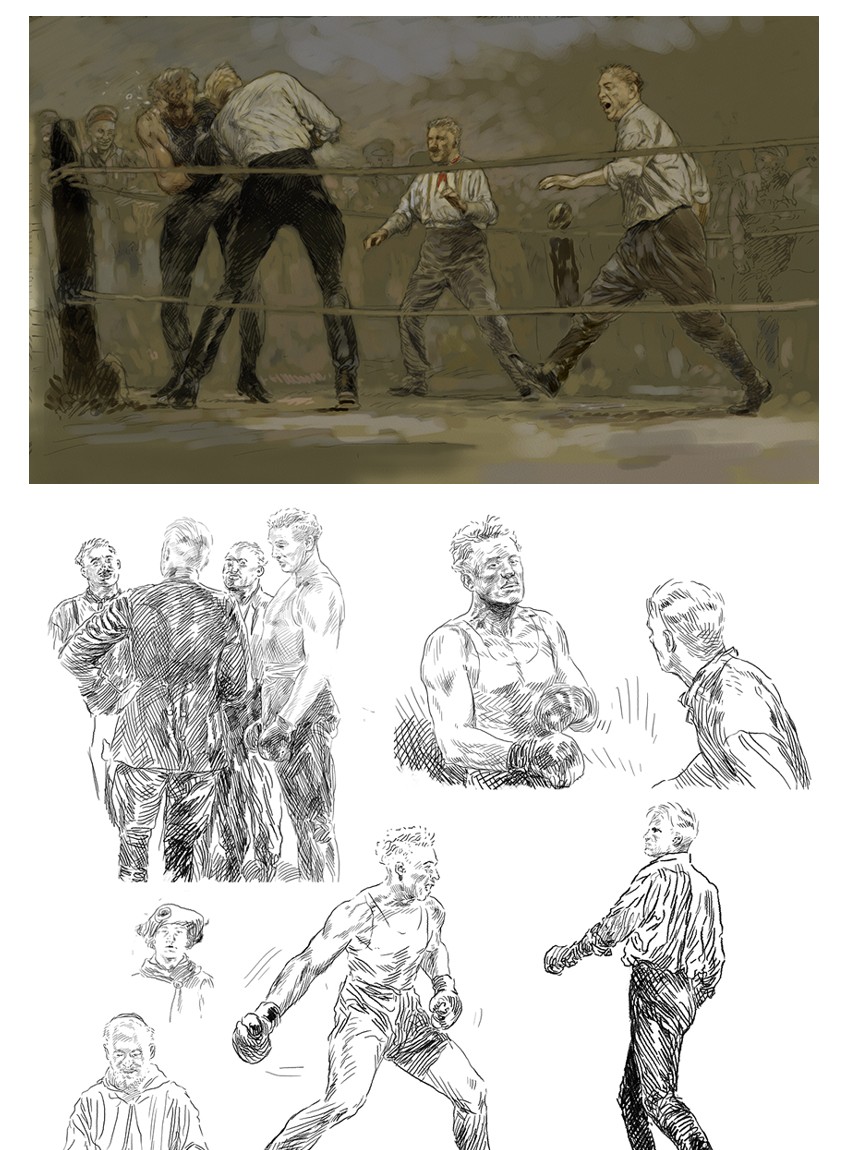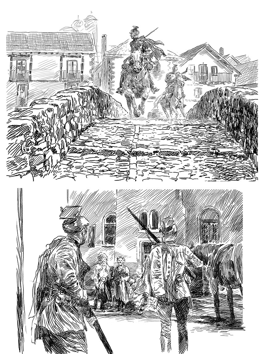 CP : C’est une bonne question, qui aide à exprimer pourquoi mon style convient assez bien à ces histoires. Mes influences viennent surtout de la Peinture, et concrètement, de la Peinture historique espagnole du XIXème siècle (F. Pradilla, Casado del Alisal, Ulpiano Checa, Benlliure, José Segrelles, etc.) et de l’illustration américaine du début du XXème siècle (N. C. Wyeth, Leyendeker, Dean Cornwell, Coubert, Fawcett, Joseph Clement Coll, etc.). Voilà les coupables. Après, la découverte d’autres auteurs de BD (Windsor McCay, Alex Raymond, Ray Moore, Hal Foster, Jean Giraud, Hermann, etc.) ont fait que je souhaitais raconter mes histoires en utilisant la BD. Ce sont seulement des influences de formation, puisque je suis autodidacte. Je ne crois pas qu’on puisse déterminer une influence précise de mon style, et, je n’ai jamais laissé les auteurs qui me plaisaient, interférer avec mon propre style.
