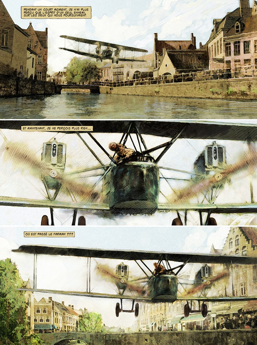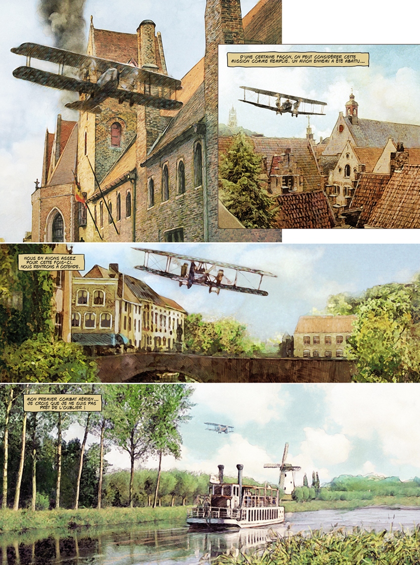 CP : Avec beaucoup de difficulté. Je ne sais pas comment font les autres auteurs. J’ai trouvé des livres intéressants, mais bien qu’ils aient des photos d’époque, c’était très difficile d'extraire les éléments car ces images avaient une très mauvaise qualité. J’ai regardé quelques films, mais en étant très vigilant, puisque, le plus souvent, le cinéma prend des libertés avec la documentation. J’ai aussi trouvé des maquettes et des modèles que quelques passionnés construisent et font même voler. Cependant, il y a eu des avions dont je n’ai pu voir les détails de construction.