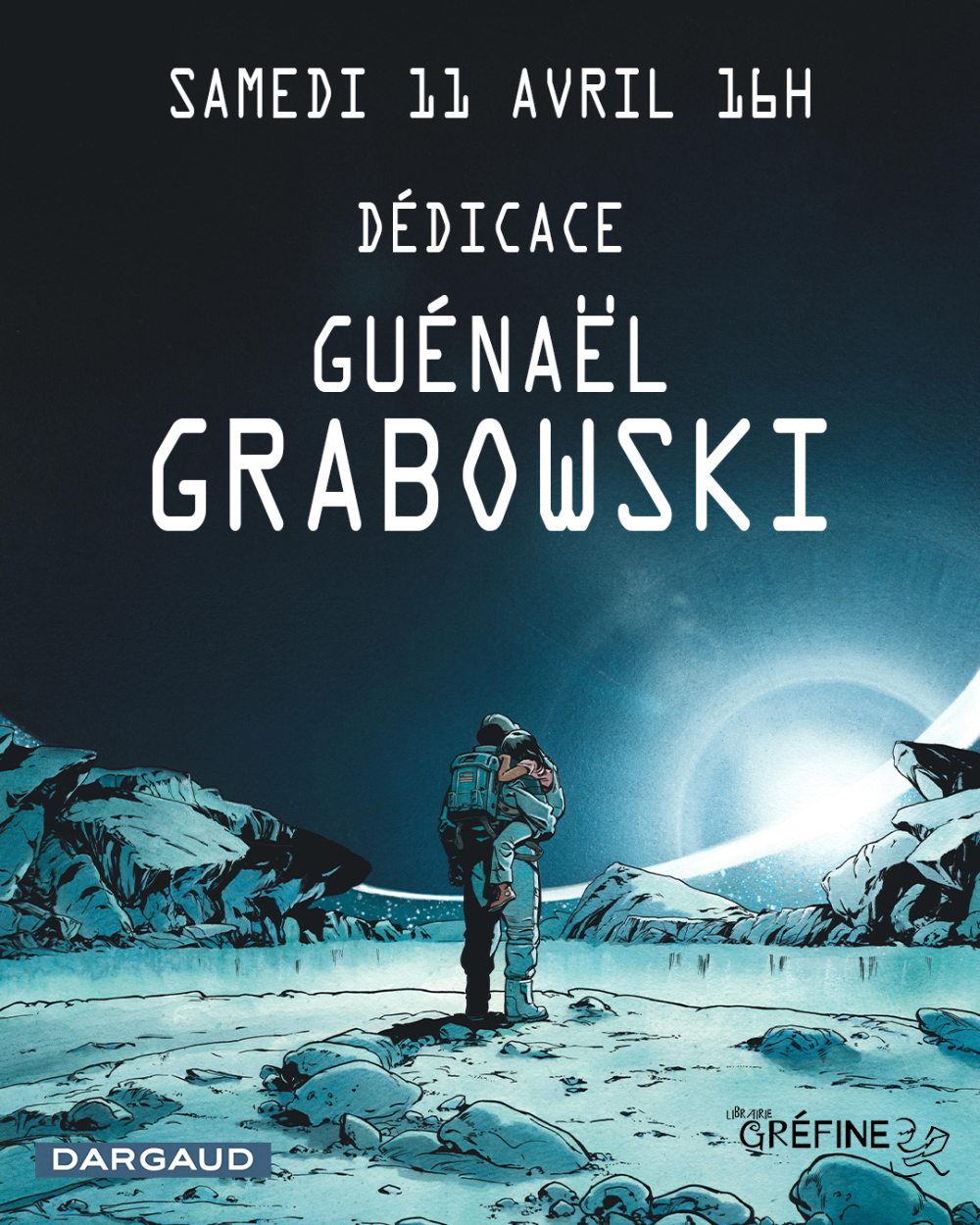 Guénaël Grabowski dédicace à nouveau à la librairie Gréfine le samedi 11 avril à partir de 16h pour la sortie de sa nouvelle BD "Personne" scénarisée par Pelaez ! Après "Neuf" et la série "Nautilus", le talentueux dessinateur rochelais, revient avec une bande-dessinée de science-fiction mêlant thriller psychologique et intimiste.