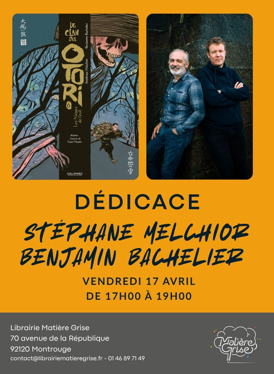 C'est avec plaisir que nous vous annonçons la venue le VE 17 avril 2026 de 17h à 19h de Stéphane Melchior et Benjamin Bachelier pour la dédicace du tome 6 du Clan des Otori. ⚠ Places limitées, merci de nous contacter