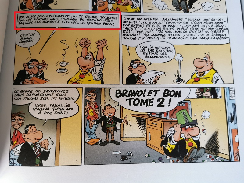 Ah ben non, justement, à part quelques gars vieux gags anachroniques, Goscinny n’apparaît pas l'album, on est passé des grandes heures des affrontement délirants Goscinny-Talon, à la gestion managériale du journal Polite. Une page se tourne, Greg ne retrouve plus ces repères, et les gags de DRH font long feu. Greg n'a plus la flamme et Talon s’éteint.