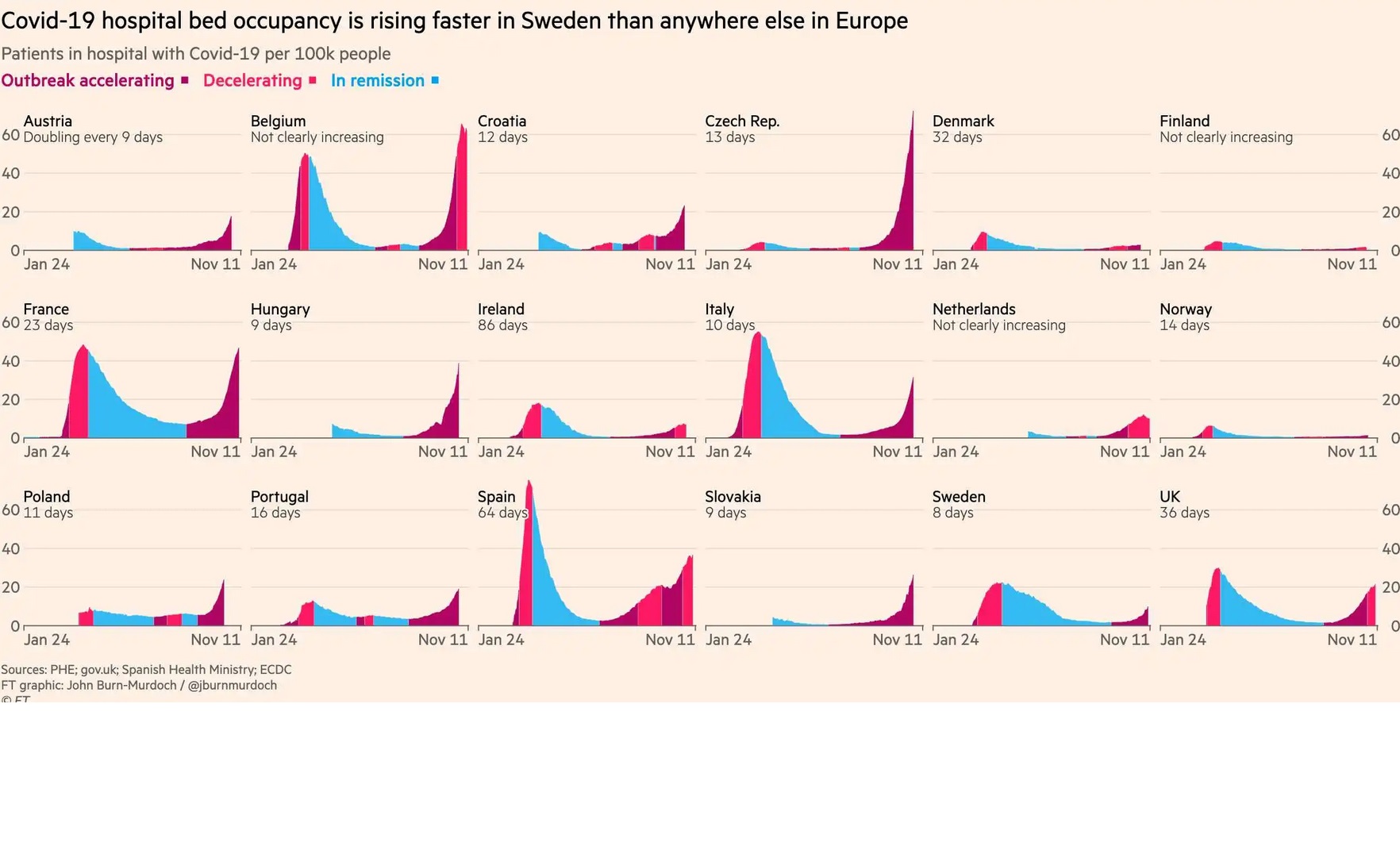 Si tu avais lu les liens que je t’avais donné précédemment, tu saurais que le problème c’est bien que la surcharge hospitalière dure plus longtemps que ceux des pays qui adoptent des mesures plus strictes. Et malgré ces interventions étatiques, le personnel hospitalier de ces pays est très fatigué. Et vu qu’en Suède, le milieu des soins s’est pris la vague en pleine figure plus longtemps, je pense que cette fatigue aura des conditions sur les malades atteints du Covid ou souffrant d’autres pathologies. Ce n’est pas pour rien que par exemple en Suisse, où nous ne sommes jamais passé à un confinement strict, les spécialistes santé s’inquiètent de la fatigue des travailleurs et travailleuses du milieu hospitalier. Bon après ce sont des gens ayant fait des études scientifiques et pas financières , ceci explique peut-être cela.