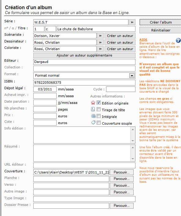 Ah, O.K. -- dommage que chez moi quand je clique dessus il ne se passe rien.jmc95 a écrit:[:fantaroux:2] Un autre problème potentiel : sur les scénaristes, il faut en entrer seulement un dans le champ et utiliser le bouton « Ajouter un auteur supplémentaire » pour le deuxième.