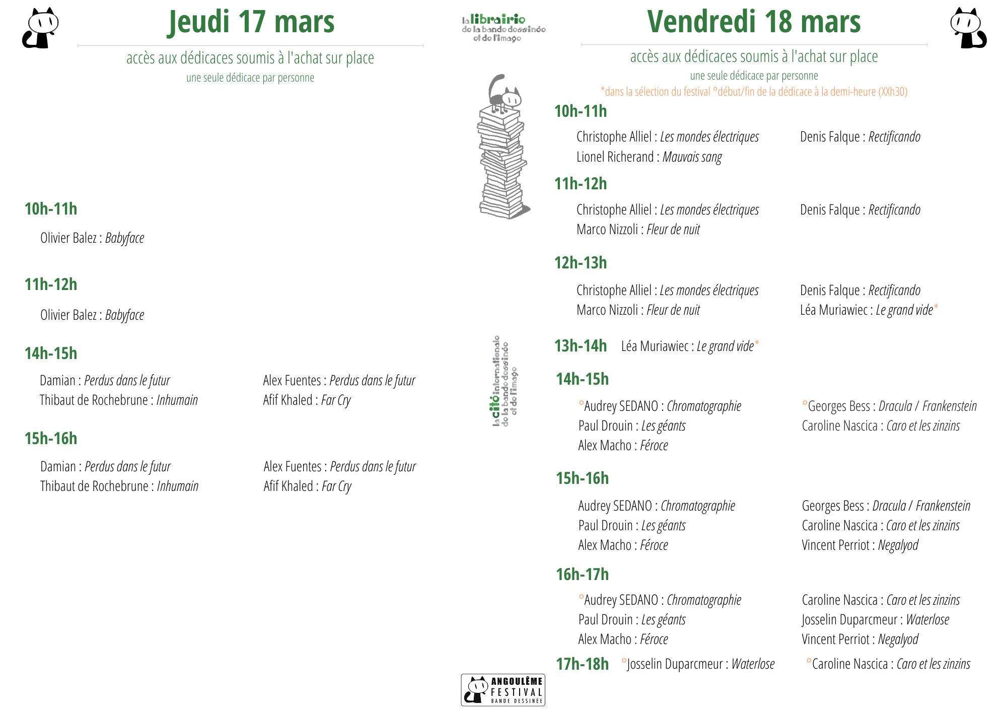 Ah d'accord, j'avais mal compris ton message : j'avais compris que le programme de la librairie cosmopolite était sorti, alors qu'il s'agissait des auteurs Dupuis qui seront chez Cosmopolite...