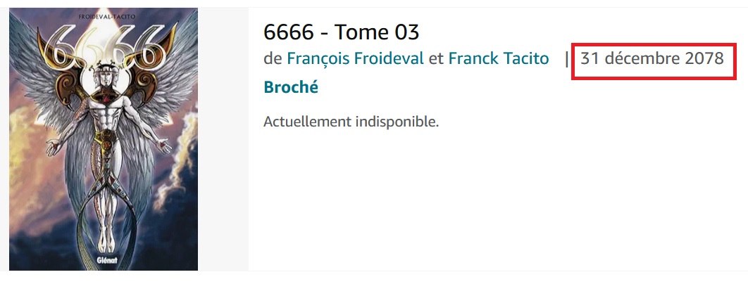 J'ai relu 666 et 6666 pendant les vacances et j'aurai bien aimé avoir la suite de 6666.... Ce Carmody, quelle classe !!!! Je vais faire un tour sur un site marchand et surprise le T3 est annoncé... Par contre à voir la date de parution, je crois qu'on peut attendre....On va se contenter de la couverture....