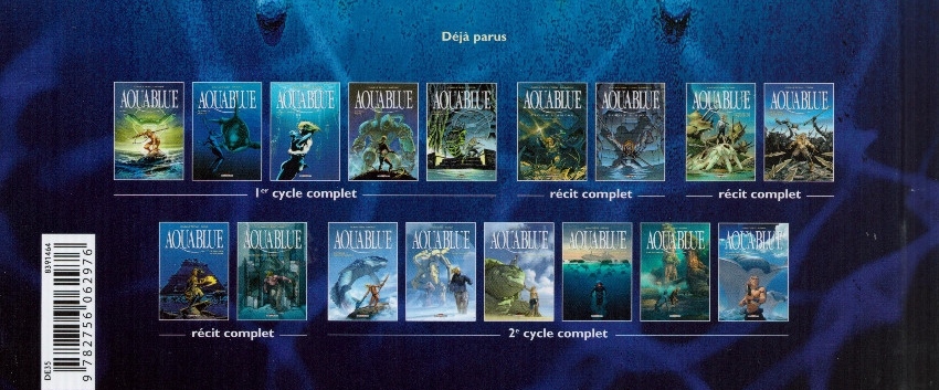 Le Rescator a écrit:Une subtilité, peut-être, à intégrer dans le continuum des fiches "Aquablue" de la BEL, car la quatrième de couverture de ce T17 (Cf : Lien direct ci-dessus) considère les trois diptyques centraux comme des récits, encadrés par le premier cycle (T1 à T5) d'une part, et par le deuxième cycle (T12 à T17) d'autre part.