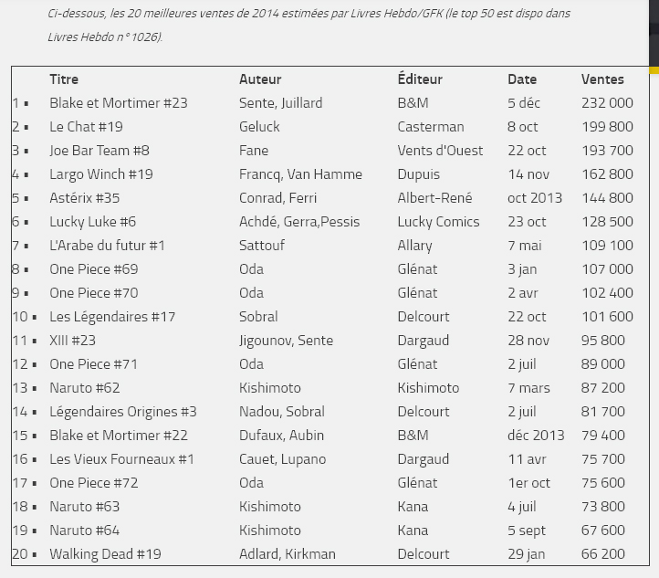pabelbaba a écrit:Cependant je trouve ça étonnant pour une telle locomotive de ne pas se vendre plus longtemps au dessus des autres BD et de surperformer sur une durée si courte.