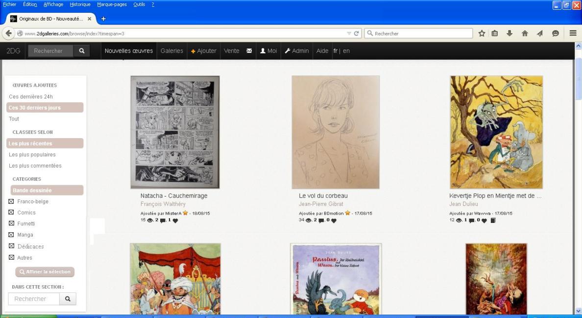 tzynn a écrit:Est ce qu'il y aurait moyen d'améliorer les filtrages? Par exemple je voudrais ne pas voir les comics sauf 5-6 auteurs particuliers. Ou bien ne pas voir les fumetti à part 1 ou 2 auteurs précis. Est ce possible? De même pour les dédicaces je ne les vois pas (c'est bien) mais je ne serais pas contre de voir celles de 2-3 auteurs, par exemple les dédicaces de Wasterlain.