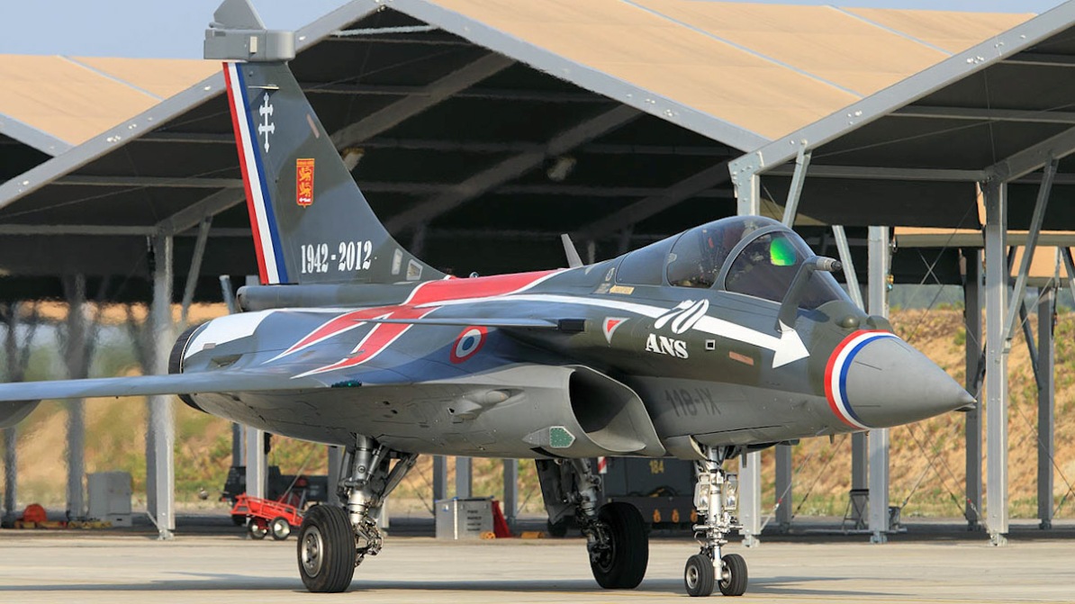 Remarquez la peinture camouflage style M2000D : c'est le seul moyen qu'on a trouvé pour faire croire que le Rafale est un bombardier