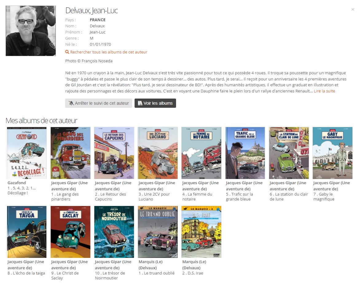 BDGest a écrit:J'ai corrigé le calcul du nombre de tomes d'un auteur et ajouté un lien sur la fiche pour voir tous les albums de cet auteur dans la bedetheque.