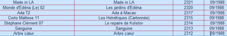Notamment, Made in L.A. de moebius EO n°2321 alors qu'il y a un n°1995 avec le même DL;