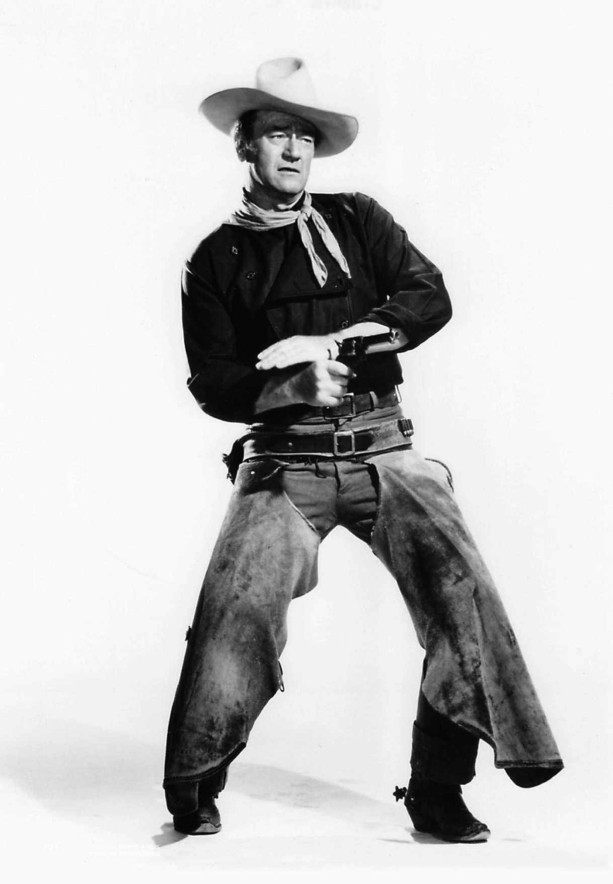 2 - Puisque la main gauche de Blueb arme le chien en vue de tirer une nouvelle fois, autant dessiner ce chien. Sur la photo de John Wayne, on le distingue sans difficulté.