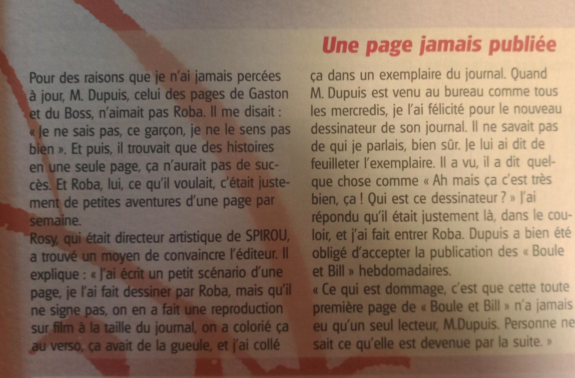 patricelg a écrit:l'histoire est connue, M. Dupuis n'aimait pas trop Roba et ne lui donnait pas vraiment la chance à ses histoires d'être publiées