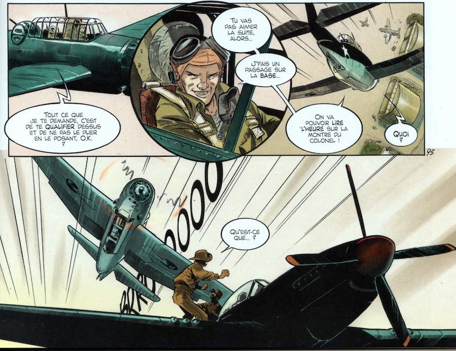 Quant à la pitrerie de Sonny, qu'on ne me dise pas qu'elle s'inscrit dans la tradition. Elle est mal construite et je ne comprends pas comment Zumbiehl, un ancien de l'Aéronavale, parvient à intégrer une séquence aussi loufoque et impensable dans son récit. Même le pilote le plus fou de la Navy n'agirait pas ainsi, alors pour un pilote censé procéder à un vol d'essai, ça relève du pur fantasme...![]()