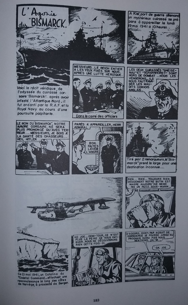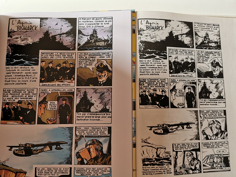 JYB a écrit:Complément d'information : à noter que dans les intégrales de Buck Danny des années 1990, intitulées "Tout Buck Danny", le tome 12 publie déjà la BD L'agonie du Bismarck. Malheureusement, je n'ai pas cette intégrale (du moins le tome 12) aussi je ne peux vérifier, mais il semble que la BD est remontée en 10 pages (au lieu de 16 à l'origine dans Spirou). Elle est en Noir & blanc (et mieux lisible que dans la version intégrale d'il y a quelques années). En fait, l'album Histoires courtes qui vient de sortir a repris les mêmes films, qui ont été mis en couleur pour l'occasion. Mais je crois que les fautes et coquilles figuraient déjà dans la version "Tout Buck Danny" ; rien n'a été corrigé pour l'album 2020.