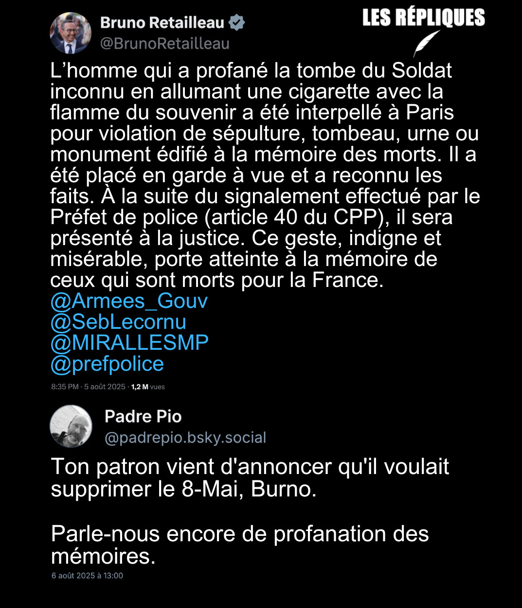 Le mec il a juste enjambé un cordon pour se pencher vers la flamme. C'était même pas du shit.Cet homme, bien connu des services de police, possède 21 mentions au fichier de traitement des antécédents judiciaires (TAJ), parmi lesquels vol de voiture, dégradation, violence ou encore injure publique en raison de la race.